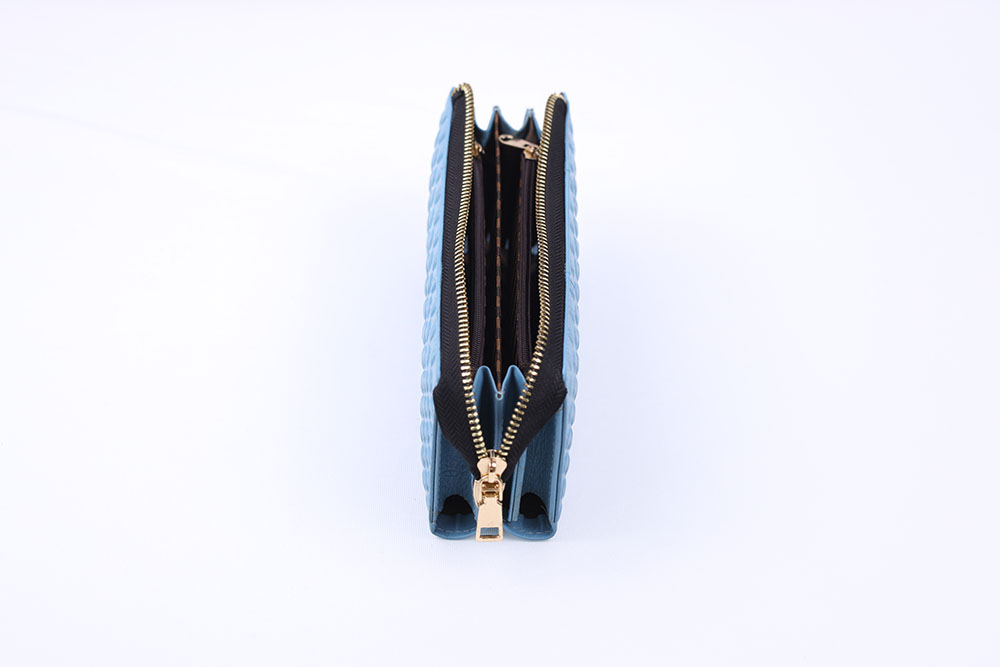 Leather Ribbed Zipped Ladies Wallet