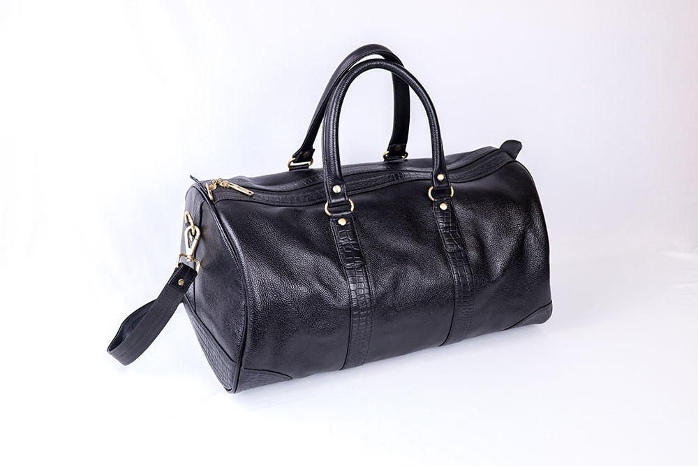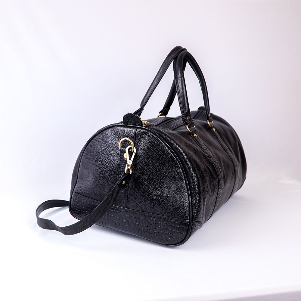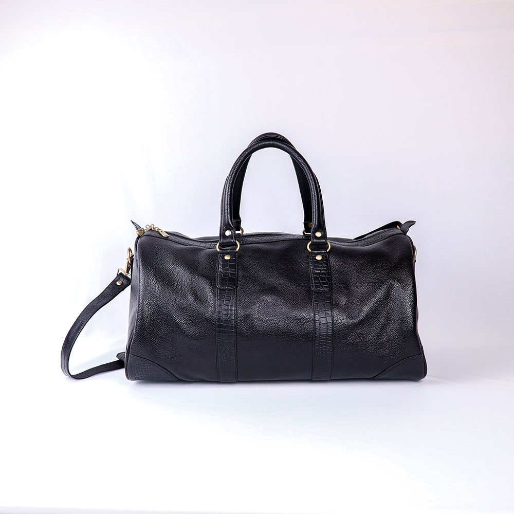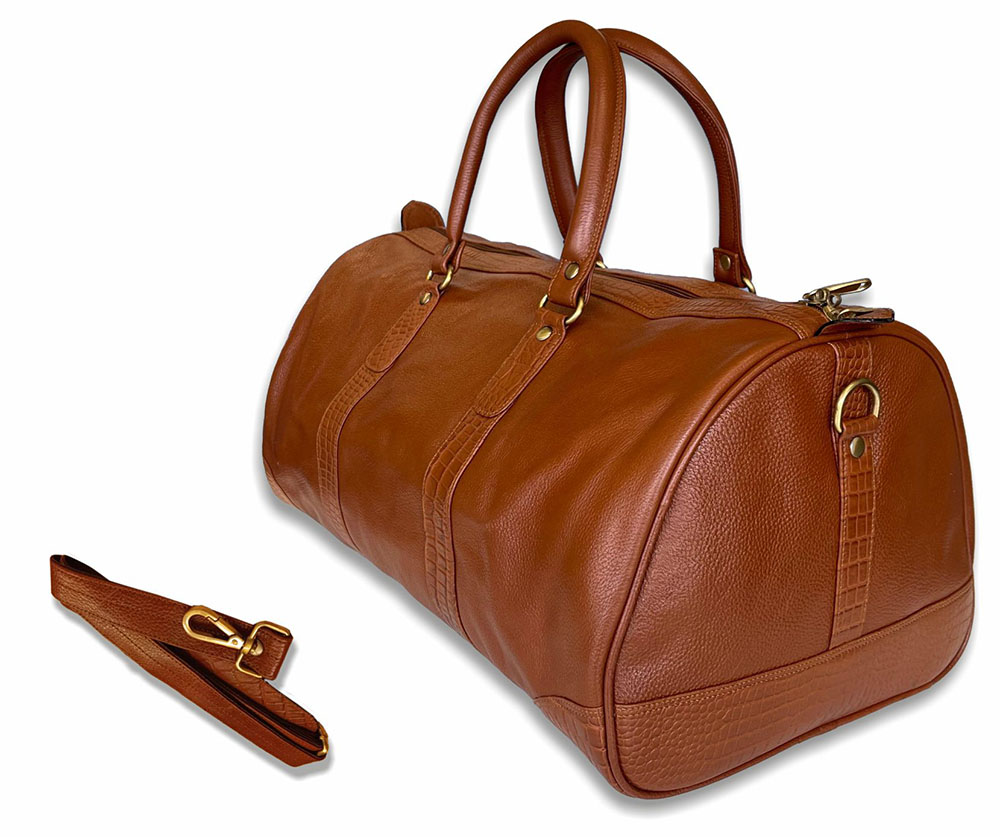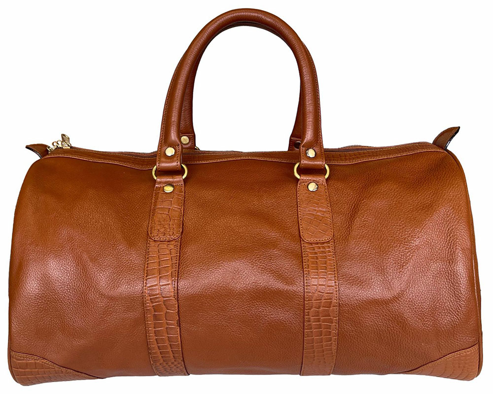 Croco Trim Leather Duffle Bag